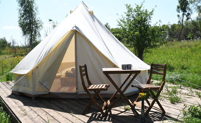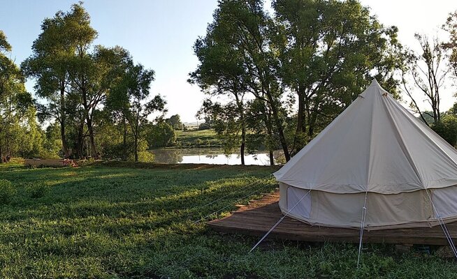 Откройте для себя «FamilyGlamp Куликово поле» — оазис спокойствия и приключений в объятиях природы. Представьте: река ласково журчит, воздух благоухает травами, а вы просыпаетесь под трели птиц. В двух шагах — песчаный пляж для солнечных ванн, сапсерфинга и пикников. Дети в восторге от игр с козочками, а в шатрах с комфортом ждут удобные кровати и защита от непогоды.