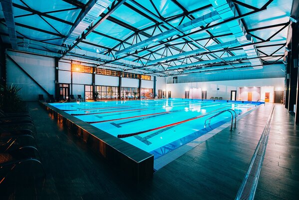 В загородном клубе функционирует уникальный спортивный бассейн с панорамным видом на хвойный лес.
