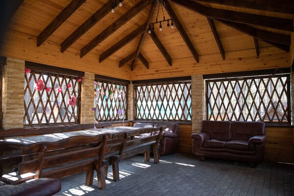 - беседка «Стекляшка» с мангалом до 30 человек — 2000 ₽/час;