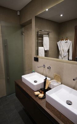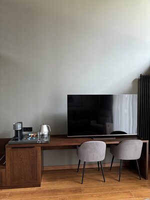 Начните день с аромата свежесваренного кофе из вашей персональной кофемашины или насладитесь коллекцией изысканных чаев на чайной станции. Для сладкоежек предусмотрен шоколад, а в мини-баре всегда найдется широкий выбор прохладительных напитков.