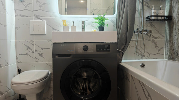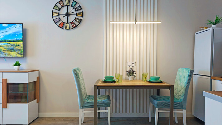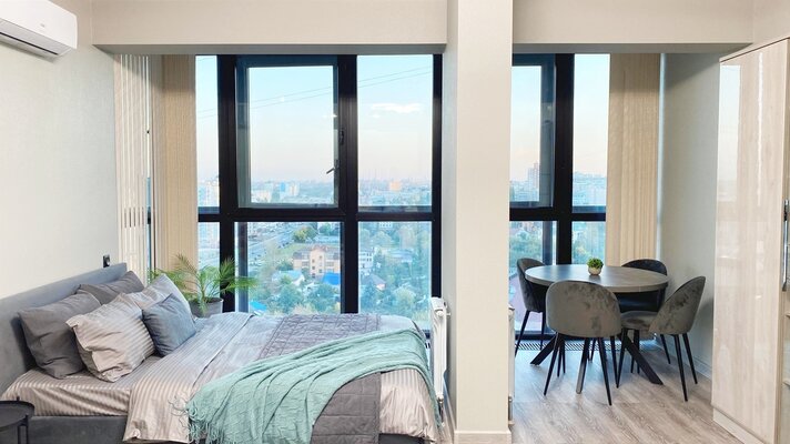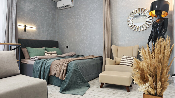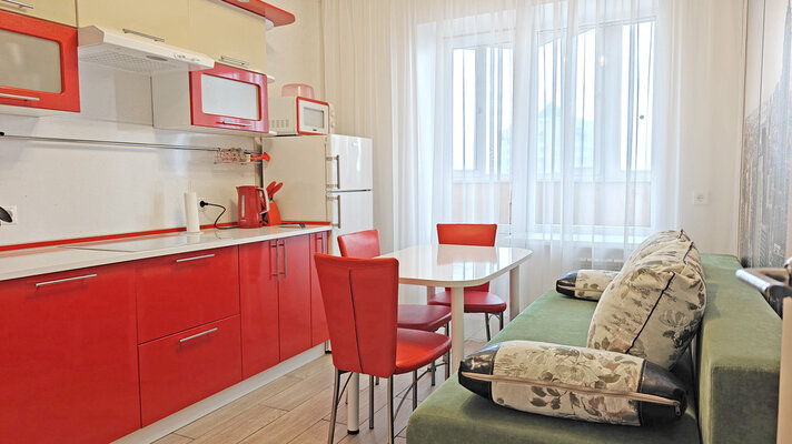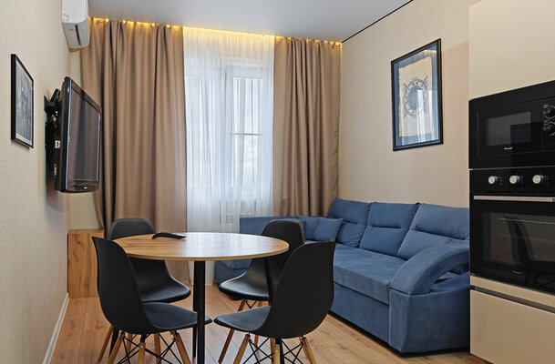 В каждой квартире есть кухня, оборудованная бытовой техникой и набором посуды, удобная кровать с чистым постельным бельём, современный санузел с туалетными принадлежностями, телевизор, Wi‑Fi и кондиционер. Гостям доступны стиральная машина и утюг.