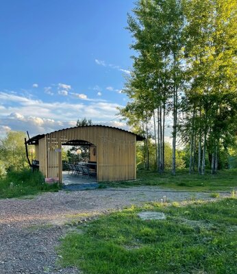 Гостям предлагаются уютные домики с удобствами, полностью оборудованные для комфортного отдыха. У каждого дома есть мангальная зона и котлы для отопления.