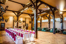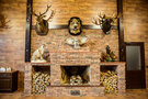 Охотничья тематика раскрывается в интерьере основного зала, оформленного экспозицией фигур диких животных и природными материалами, создающими неповторимую атмосферу русского леса, романтику и уют. Тут вы всегда можете провести вечер с близкими у камина, а также забронировать просторный зал для семейных или корпоративных мероприятий.