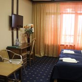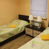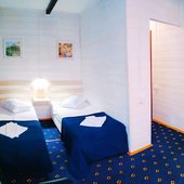 Двухкомнатный четырехместный номер с двумя односпальными кроватями и одной двухспальной кроватью (или две двухспальные кровати).