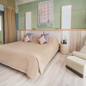 Номерной фонд составлен из нескольких категорий, которые различаются по комфорту, а также вместительности. Вы сможете выбрать себе обычный двухместный номер или заселиться в представительские апартаменты. В любом случае, у Вас будет удобная спальная мебель и собственная ванная комната.