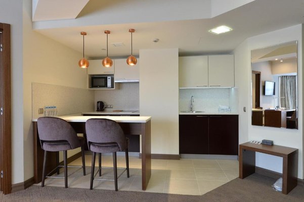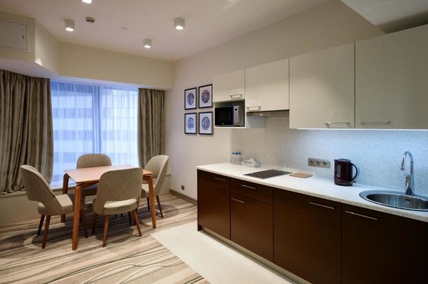 К услугам гостей одно-, двух- и трехкомнатные апартаменты. Все номера оснащены мягкой мебелью, ванной комнатой и мини-кухней, которая оборудована холодильником и плитой. А все ванные комнаты укомплектованы бесплатными средствами личной гигиены. Кроме того, из окон номеров открывается вид на Москву.