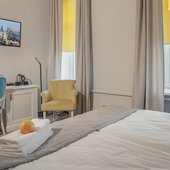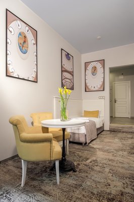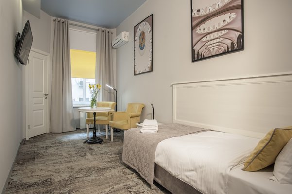 На выбор предоставляется несколько категорий, которые различаются площадью и размещением. У номеров имеется собственная ванная комната, а также проведен Интернет и кабельное телевидение.