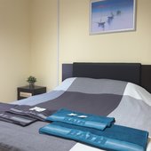 Номера представлены различной категории и вместимости. В каждом из них установлена необходимая мебель и современная техника для комфортного отдыха. Кроме того, имеются постельные принадлежности и набор полотенец. Здесь возможно размещение до 35 человек.