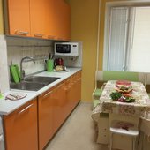 Приготовить еду можно самостоятельно на общей кухне. В шаговой доступности находится продуктовый магазин и кафе.