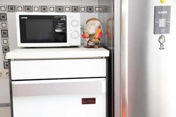 Приготовить еду можно на кухне. К услугам духовка, плита, чайник и холодильник.