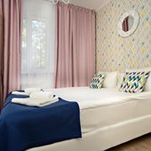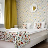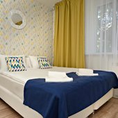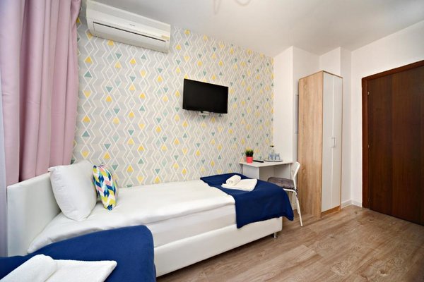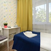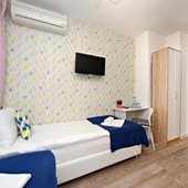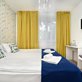 Каждый номер оборудован телевизором с кабельным телевидением, письменным столом и собственной ванной комнатой. Категории выполнены в приятной цветовой гамме, что делает времяпровождение в них более комфортным.