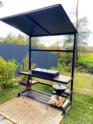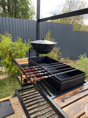 Простораная крытая терраса станет прекрасным местом для семейного отдыха или барбекю. Мангальная зона и уютный банный чан вместимостью до 4 человек доставят особое удовольствие.