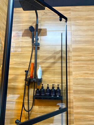 Ванная комната порадует теплым полом и душевой кабиной. Также в вашем распоряжении стиральная машина и необходимые принадлежности.