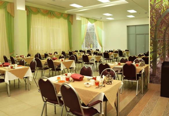 Питание в санатории диетическое, трехразовое, осуществляется в двух столовых на 200 и 128 мест, по основным диетам (заказная система).