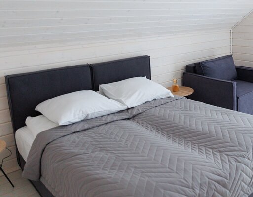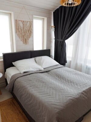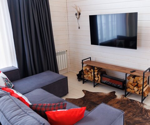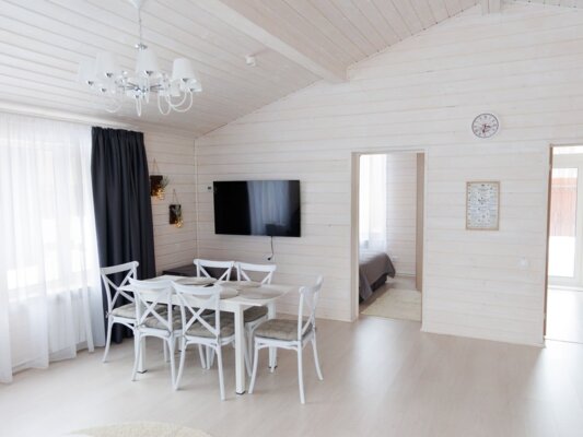 Домик оснащен современными удобствами: централизованное отопление, кондиционер, проекционный экран и ЖК телевизор. Доступна кухня с холодильником, микроволновкой и раковиной, а также крытая мангальная зона во дворе, где вам предоставят шампуры и решетки.