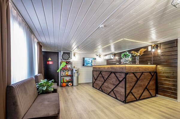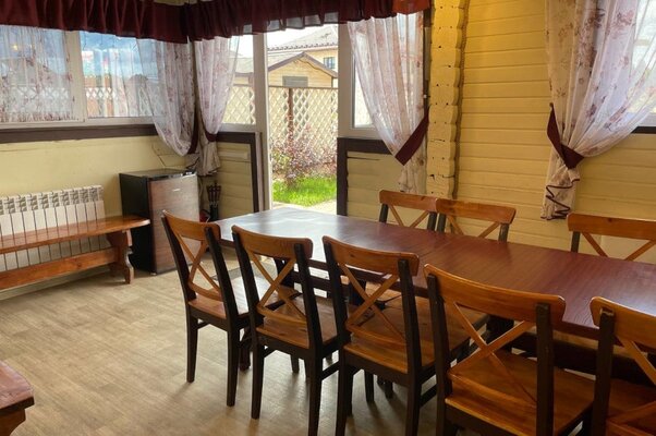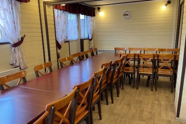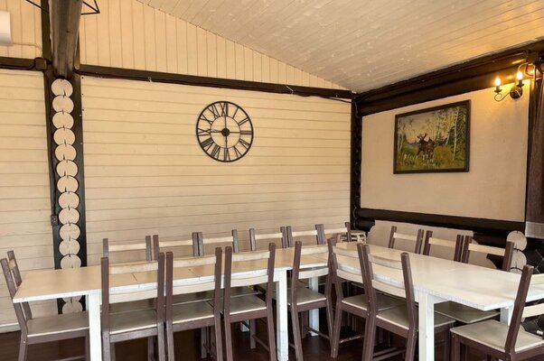 Уютное пространство площадью 45 м² и вмещающее до 30 человек идеально подходит для семейных праздников и мероприятий любого характера. Здесь есть кухонный уголок с холодильником и раковиной, санузел, обеденный стол и диван для отдыха. Внутренний дворик с мангальной зоной позволяет организовать время на свежем воздухе.