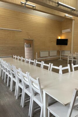 Это просторное помещение площадью 65 м², вмещающее до 60 человек, идеально подходит для проведения различных мероприятий. Здесь можно организовать свадьбы, выпускные, дни рождения, юбилеи и корпоративы. Высокие потолки и светлый интерьер создают атмосферу комфорта, позволяя с легкостью адаптировать пространство под любые потребности.