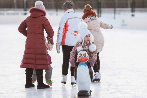 Каток площадью 2500 квадратных метров предлагает качественный лёд и пункты проката коньков и заточки. Для начинающих фигуристов предусмотрены специальные помощники, которые помогут освоить основы катания. Забавные пингвины и миньоны помогут вашим детям уверенно встать на коньки и держать равновесие. Первые шаги на льду станут более комфортными с милыми персонажами.
