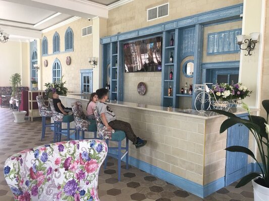 Что может быть приятней, чем посиделки погожим летним деньком в уютном уличном кафе? Ласково греют солнечные лучи, нежно перебирает волосы ветер, в руках чашечка ароматного свежесваренного турецкого кофе. Красота! Также на территории находиться детский уголок ,где под надзором родителей они могут поиграть ,попрыгать на батуте, полазить по детским домикам и насладится водопадом.