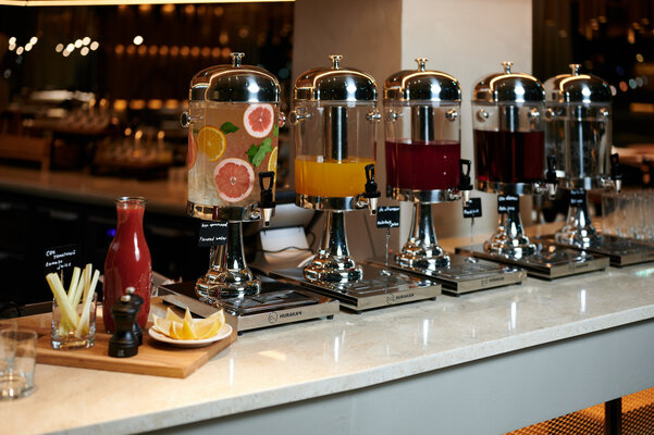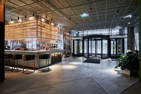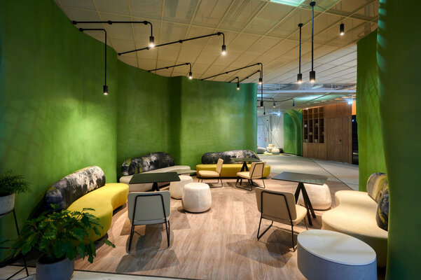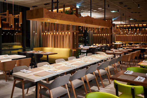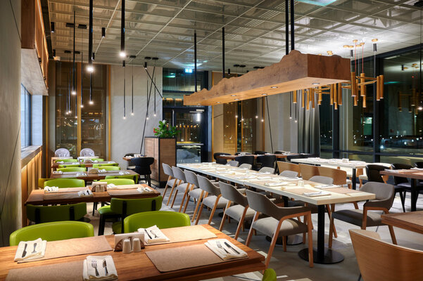 В интерьере отеля преобладают натуральные материалы: дерево, природные декоративные элементы, а также живые стены. Эта концепция создает ощущение неспешной прогулки по лесу, плавно переходящее из окружающего пространства в интерьер отеля.