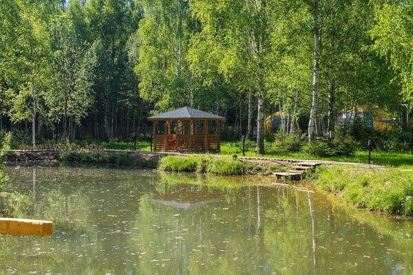 Баня расположена прямо на берегу небольшого, но очень живописного пруда. Аренда возможна от 2-х часов. В эту стоимость входит посещение бани для четырех человек. Каждый дополнительный гость оплачивается отдельно, стоимость — 2000 ₽ с человека. Максимальная вместимость бани единовременно — 6 человек.