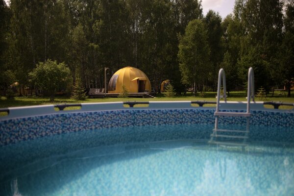 Побалуйте себя русской баней на дровах, посетите спортивные площадки, устройтесь в уютных зонах отдыха или освежитесь в одном из двух небольших бассейнов. Рядом с глэмпингом находится пруд и речка. Обширная территория предлагает множество развлечений, а заповедный лес приглашает на прогулки.