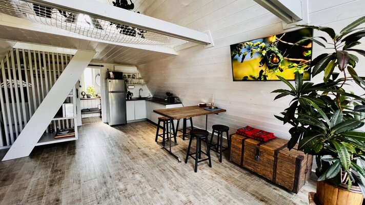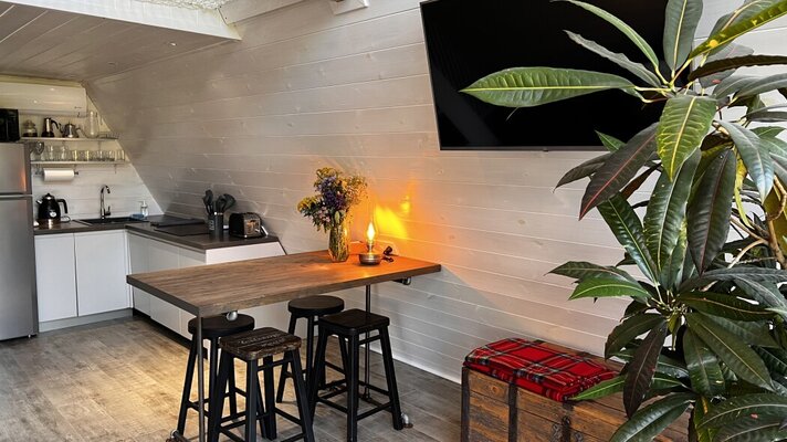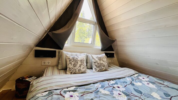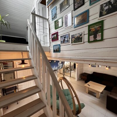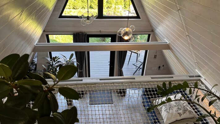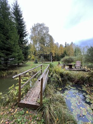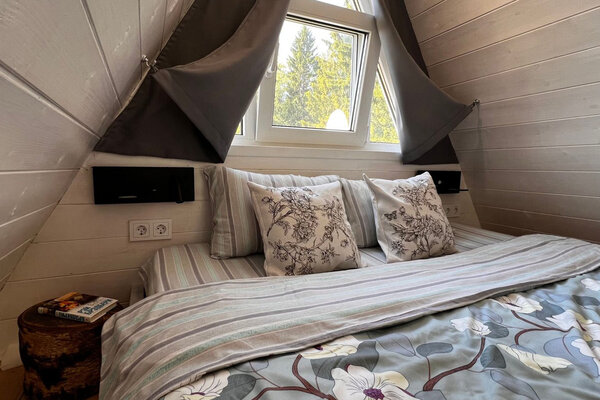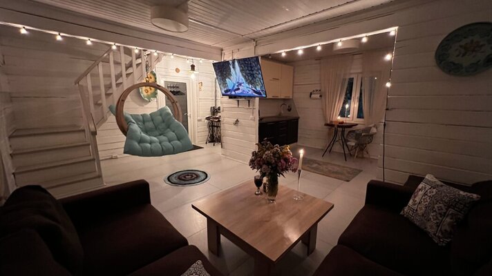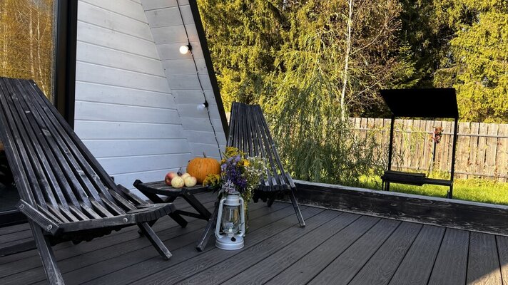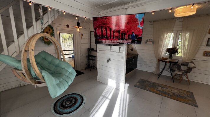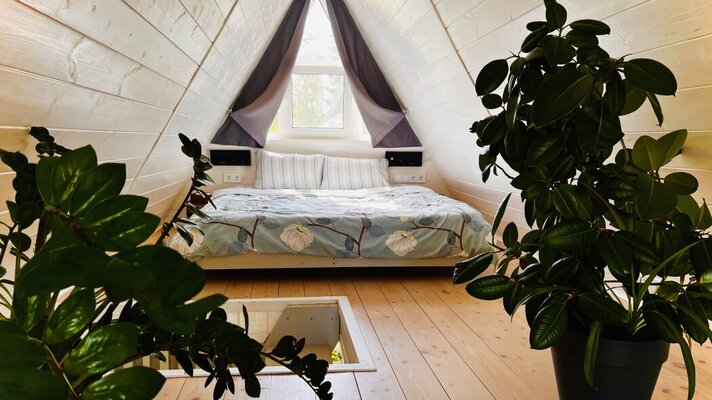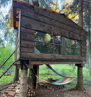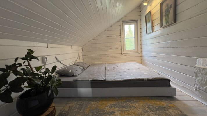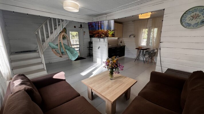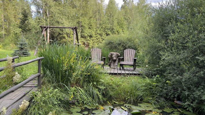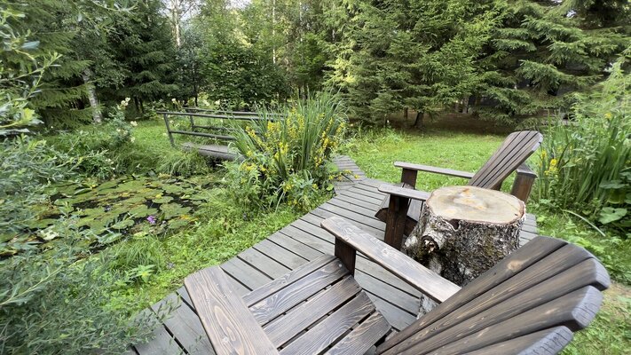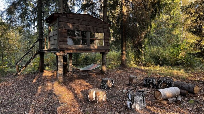 Дети оценят отдельный домик на дереве, а взрослые — уютные зоны отдыха среди лесных деревьев, живописные озера с мостиками и большими качелями, и настольный теннис. К вашим услугам круглосуточно дровяная баня.