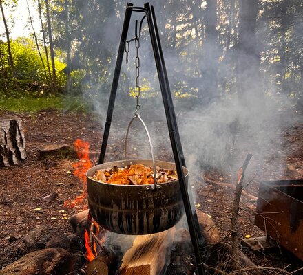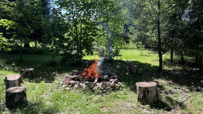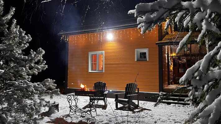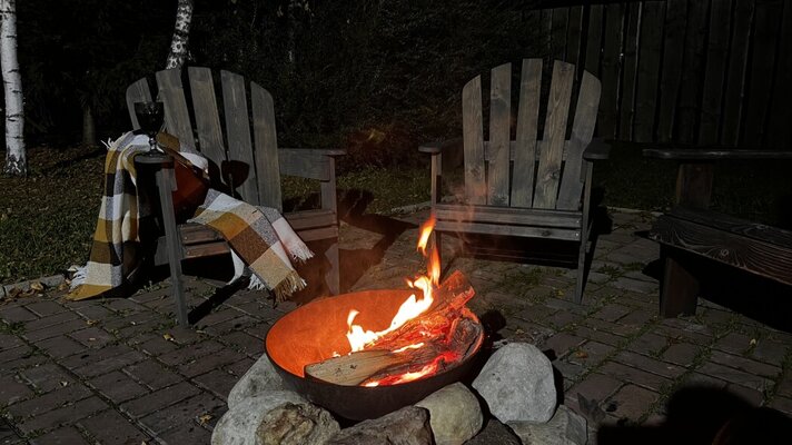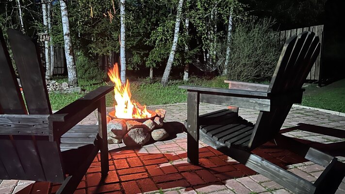 В глэмпинге «Балдейкино» каждый домик располагает собственной зоной для костра, где гости могут прекрасно проводить вечера в компании близких — атмосфера уюта и тепла создает идеальные условия для общения и расслабления.