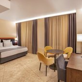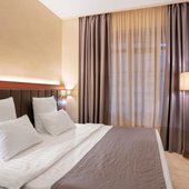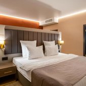 Светлые номера, оформленные в сдержанных тонах, оборудованы всеми удобствами для комфортного проживания и полноценного размещения. В каждом есть: кондиционер, удобная кровать, ванная комната, шкаф для одежды.