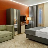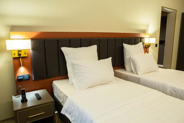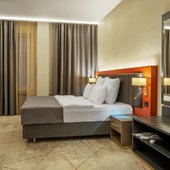 Уютные номера, оформленные в сдержанных тонах, оборудованы всеми удобствами для комфортного проживания и полноценного размещения. В каждом есть: кондиционер, ванная комната, двуспальная кровать, шкаф для одежды, телевизор с плоским экраном.