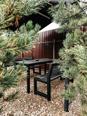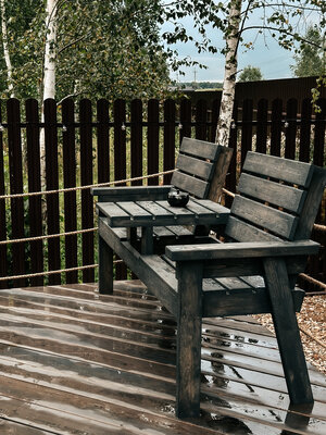 Территория «Barkwood» создана для уединенного отдыха. К вашим услугам: сезонный бассейн, банный чан с гидромассажем на дровах, сауна, площадка для барбекю, летний кинотеатр, просторные террасы и уютное место для костра с подвесными качелями. Для маленьких гостей предусмотрена детская площадка.