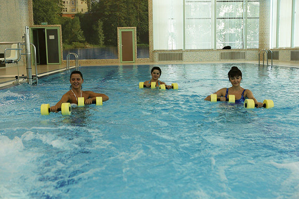 крытый — плавательный бассейн с дорожками длинной 15 метров