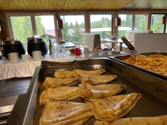 Для гостей базы «Березовая роща» в ресторане «Бабин двор» сервируют сытный и ароматный завтрак по системе шведского стола. Уютная обстановка и внимательное обслуживание создают бодрое и приятное начало дня для каждого гостя.