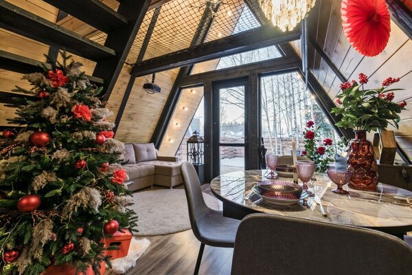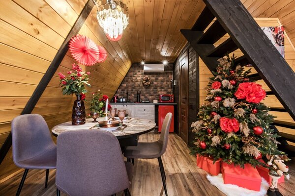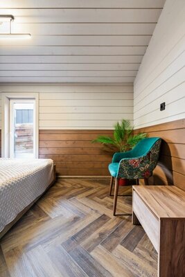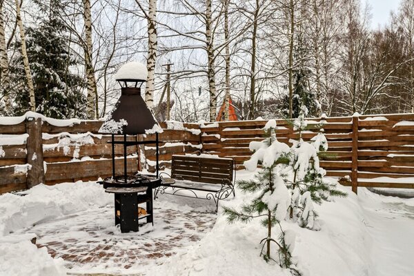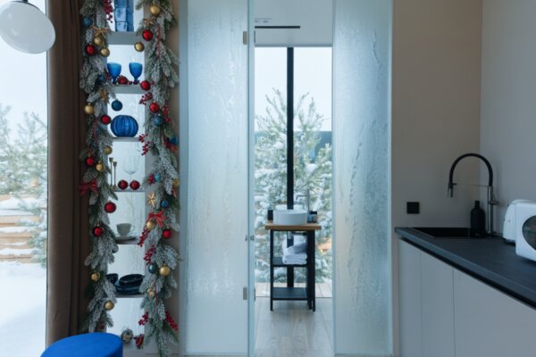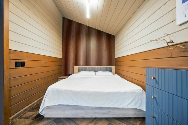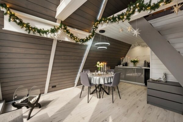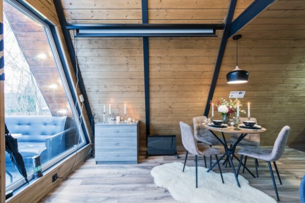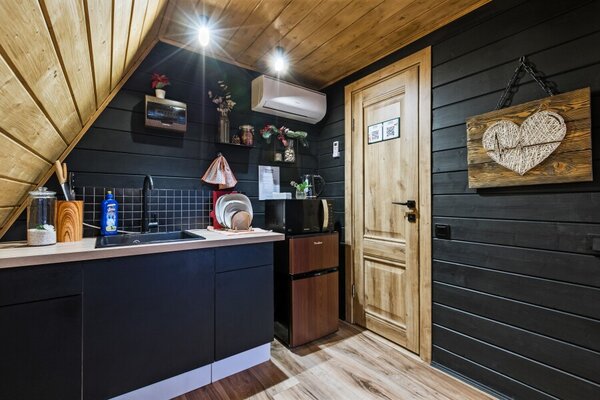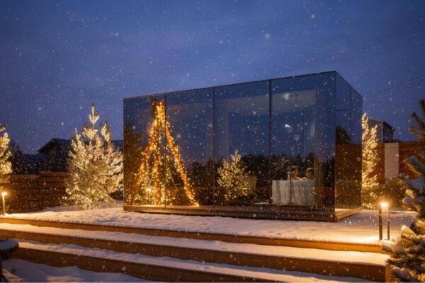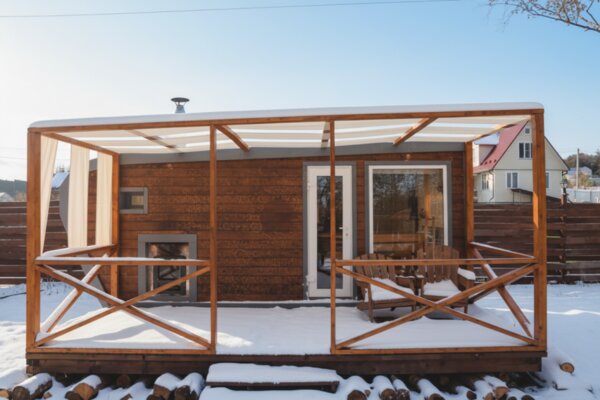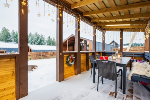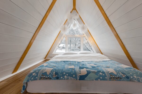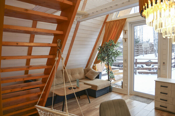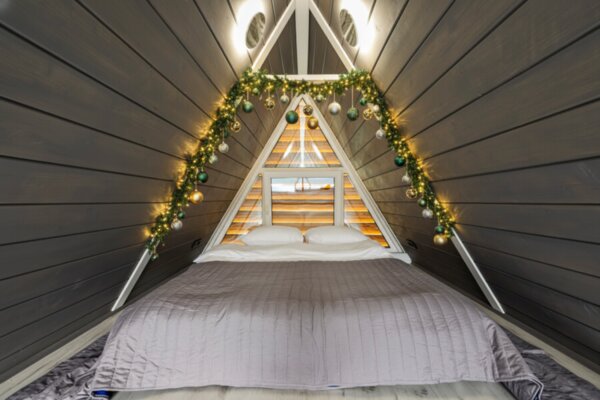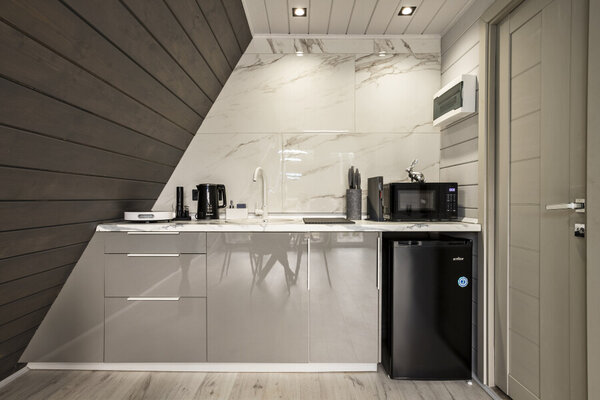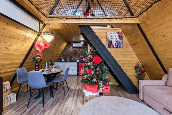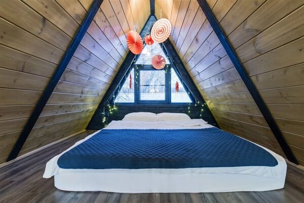 Рядом с каждым коттеджем, за исключением A‑FRAME BLACK, установлен уличный банный чан — уютное место для парения на свежем воздухе. Гостям предлагают как классический вариант парения, так и несколько специализированных программ, чтобы отдых стал еще более расслабляющим и атмосферным.