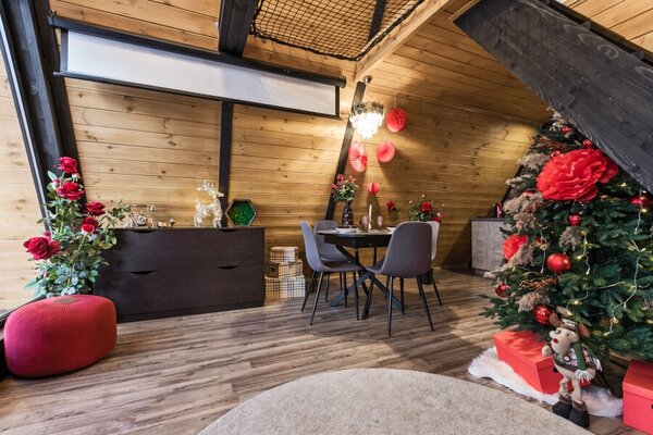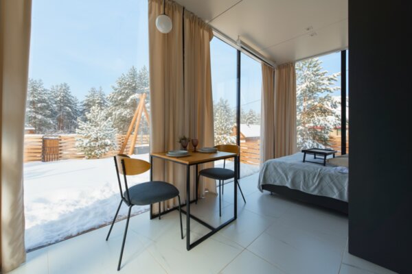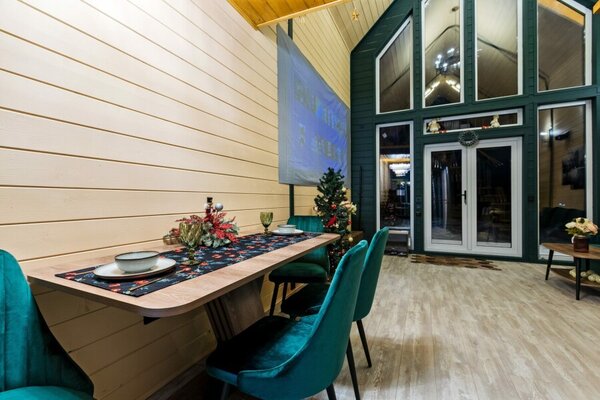 В большинстве домиков имеются проекторы с большими экранами, обеспечивающие атмосферу настоящего кинотеатра. Вечером здесь можно с комфортом смотреть фильмы.