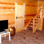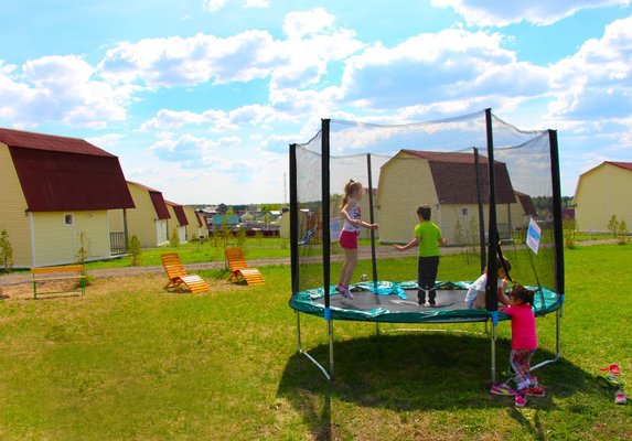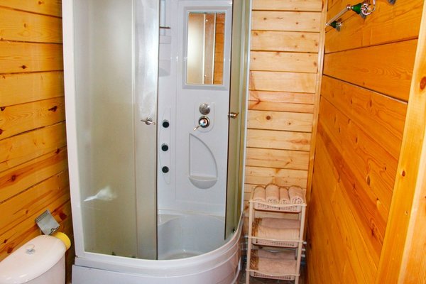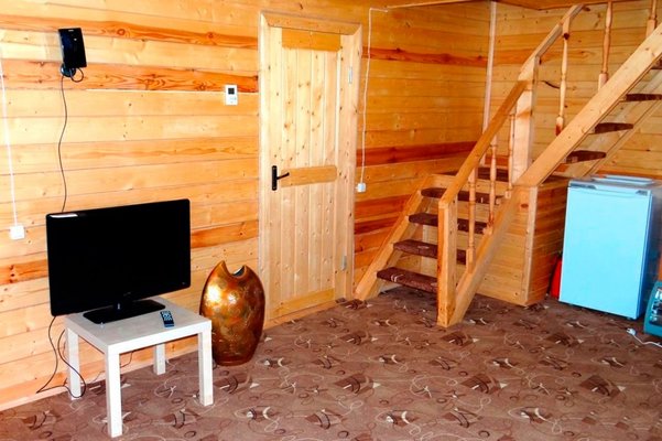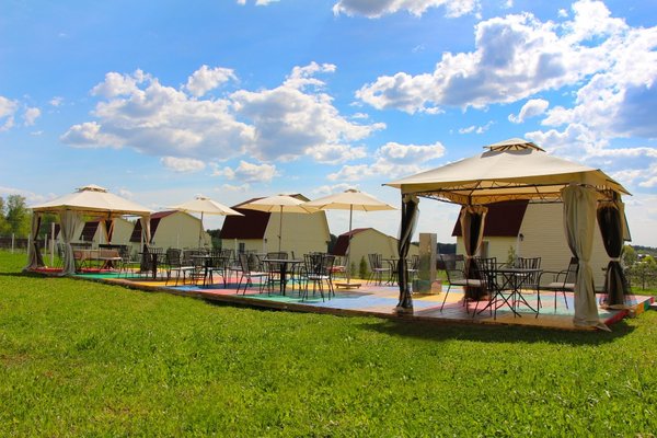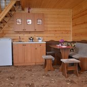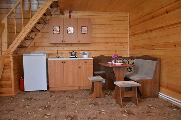 В каждом доме оборудована мини-кухня с холодильником и собственная ванная комната. В гостиной установлен диван и телевизор с плоским экраном. В числе прочих удобств — плита и чайник.