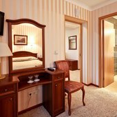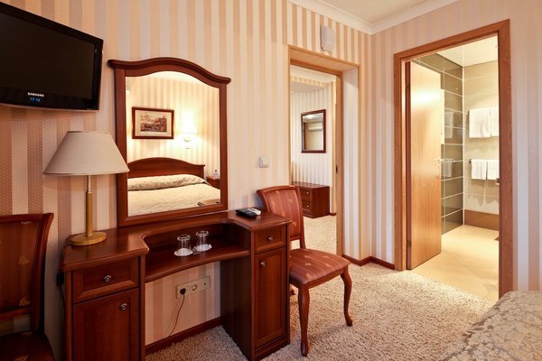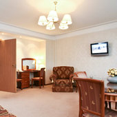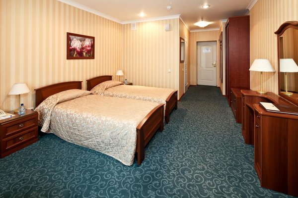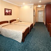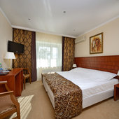 К услугам гостей представлены 160 комфортабельных номеров (143 стандартных номера, 14 люксов и 3 VIP номера), в каждом из которых имеется: