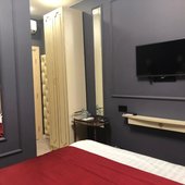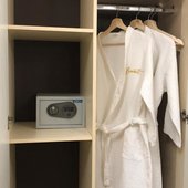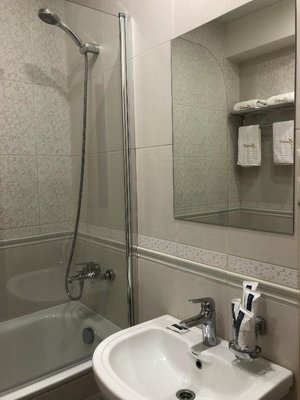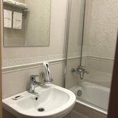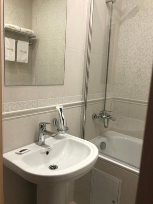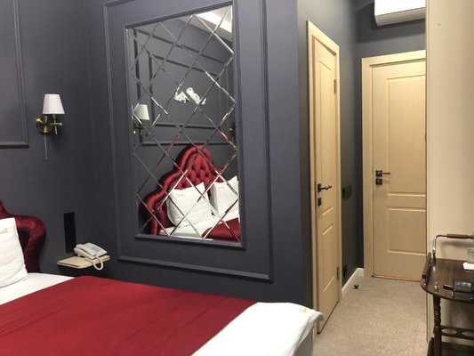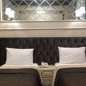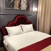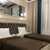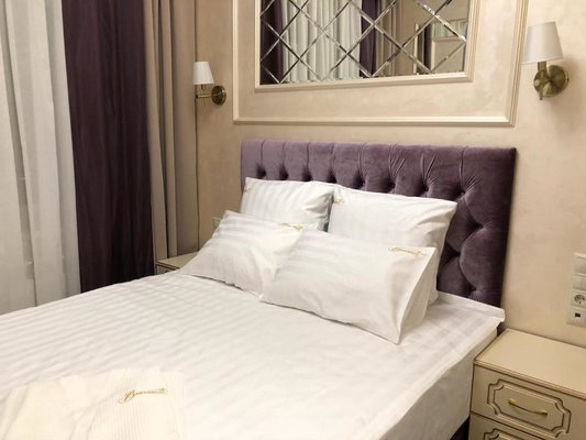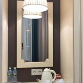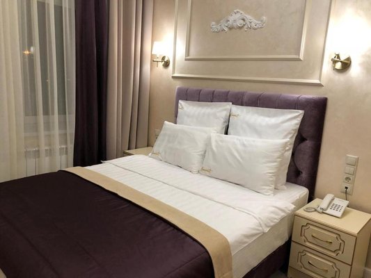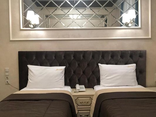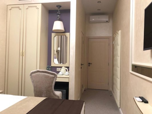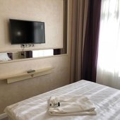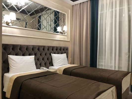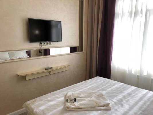 Для размещения предлагаются просторные номера оформленные в современном классическом стиле, с яркими акцентами. В них имеется все необходимое для отдыха: кондиционер, фен, телевизор со спутниковым TV, электрический чайник, утюг. В каждом есть санузел и своя ванна комната с принадлежностями для личной гигиены.