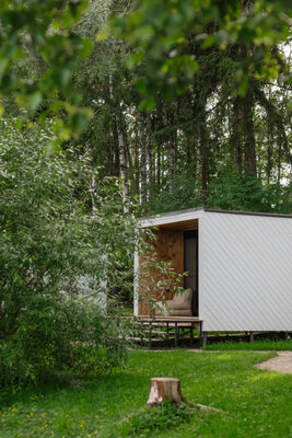 Вторая баня в комплексе, рядом с которой расположен малый чан на 4–6 человек. Внутри бани комната отдыха, стол для компании гостей, парилка и санузел. Есть полотенца, в душе есть косметические принадлежности и фен и банные аксессуары.