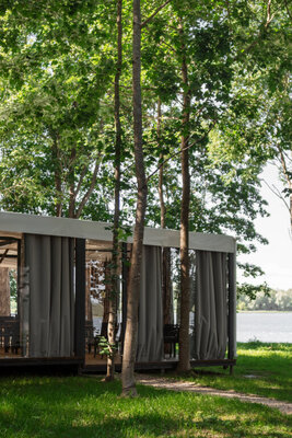 На берегу Истринского водохранилища, в деревне Шевлино, расположился глэмпинг «Берег желаний». Вас ждут уютные дома с панорамными видами, ресторан, бани, чаны, прокат водного транспорта, парковка и возможность размещения с питомцами.