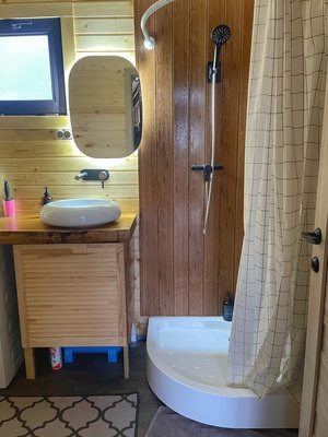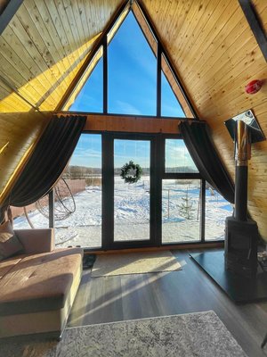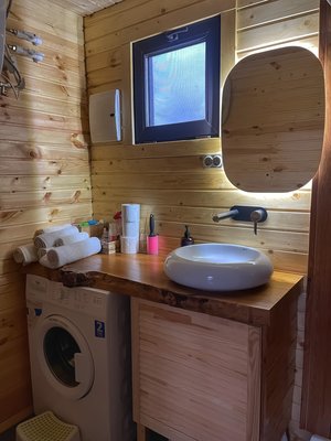 Настоящая Русская баня с панорамным видом. Здесь находится гималайская соль и горячие камни. Можно обливаться водой. 1 веник входит в стоимость.