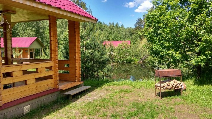 В вашем распоряжении гектар земли, естественно огороженный смешенным лесом, и собственный пруд. Уютные домики снабжены всем необходимым: кроватями, санузлом с душевой, wi-fi и другими удобствами. Домики стоят отдельно, на берегу пруда, у каждого есть открытая веранда.