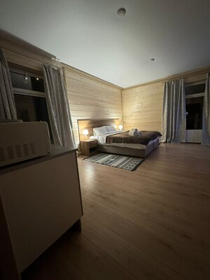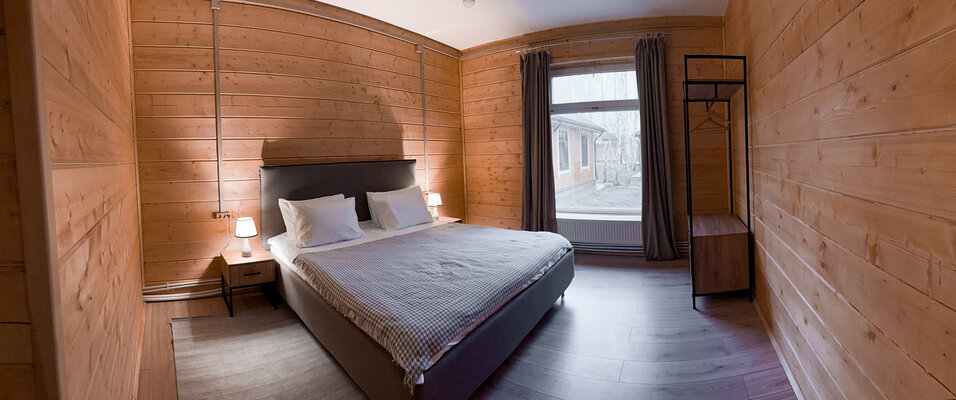 К вашим услугам 29 комфортабельных домиков, баня с купелью и зоной отдыха, мангальные зоны, ресторан-бар, а также уникальная ферма-зоопарк с возможностью общения и кормления животных, и даже верховой езды под руководством инструктора.