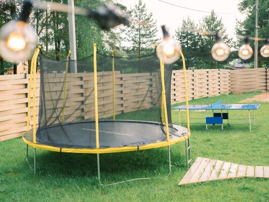 У каждого домика установлен батут.