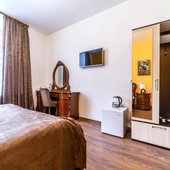 Просторные номера, оформленные в ярких тонах, оборудованы всеми удобствами для комфортного проживания и полноценного размещения. В каждом есть: кондиционер, телевизор с плоским экраном и кабельными каналами, письменный стол со стульями.