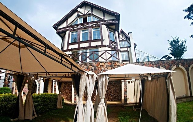 Из Москвы двигаться по Пятницкому шоссе, после деревни Благовещенка – поворот налево по указателю в сторону деревни Большаково. Далее 200 метров до въезда на территорию поместья (зеленые ворота).