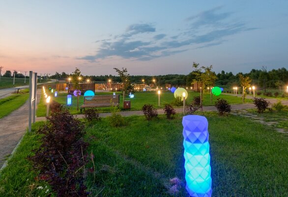 В поселке проложены пешеходные дорожки, включая экотропу, ведущую через лес к реке.