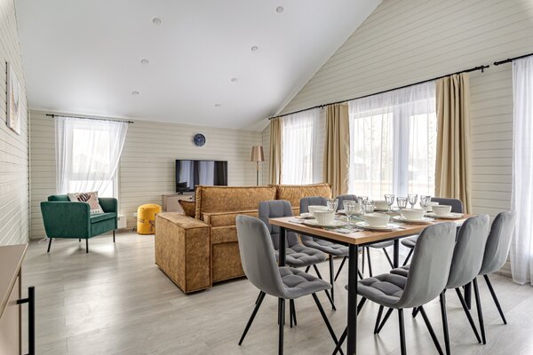 Всего в часе езды от Москвы, в тихом лесном массиве, находится коттеджный поселок «Гринлаундж», предлагающий отдых в комфортабельных домах «Братья Грин». Эти уютные коттеджи идеально подходят для семей и компаний, располагая тремя спальнями, просторной гостиной с современной колонкой «Алиса», удобной мягкой мебелью и полностью оборудованной кухней.