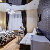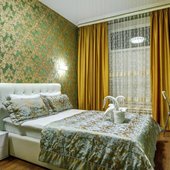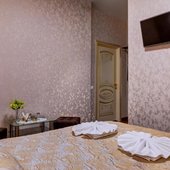 Интерьер выполнен в красивом изысканном стиле, сделан современный ремонт, светлые оттенки цветовой гаммы создают атмосферу уюта. В просторных номерах есть все удобства для полноценного размещения, имеется вся необходимая для проживания мебель и техника. В распоряжении гостей будет: телевизор с плоским экраном, прикроватные тумбочки, стол со стульями, гостиная зона, собственная ванная комната.
