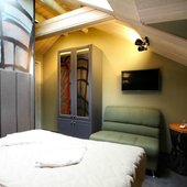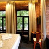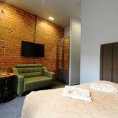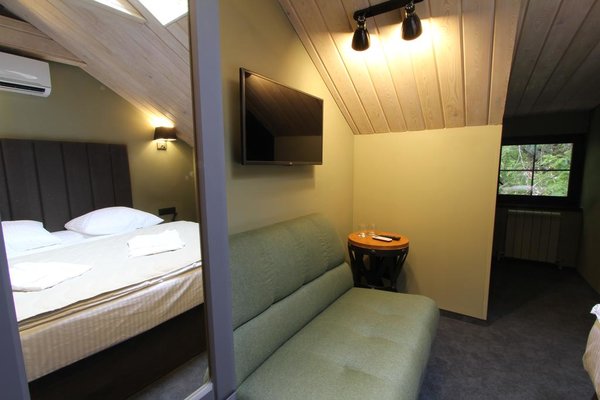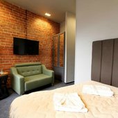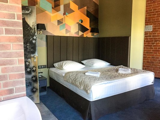 К услугам гостей стильно оформленные номера, оборудованные удобной мебелью и современной техникой. Для комфортного сна предусмотрен ортопедический матрас. Собственная ванная комната оснащена набором сантехники и гигиеническими принадлежностями.